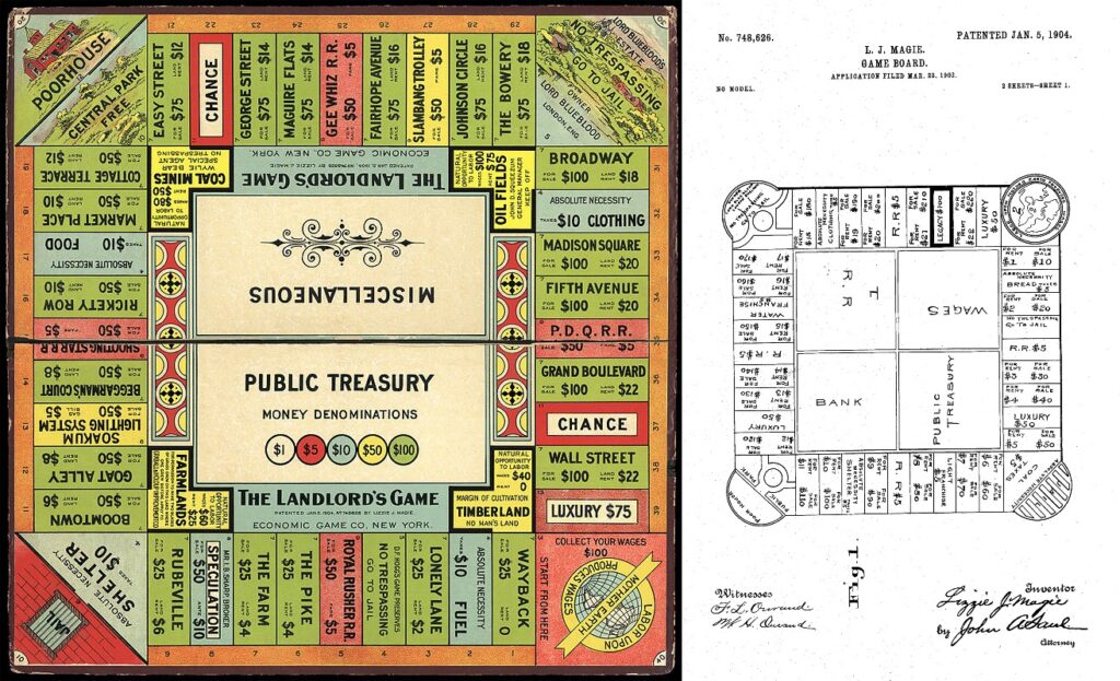 Chcąc pokazać skalę problemu, Elizabeth stworzyła grę The Landlord’s Game. Miała ona uzmysłowić ludziom, jak powszechny i niebezpieczny jest proces naciągania na czynsze i niekontrolowane posiadanie ziemi przez nielicznych bogaczy. Samym zaś celem jej gry było zdobycie jak największej liczby nieruchomości lub pieniędzy. Tytuł ten został opatentowany w 1903 roku, a przy tym była to jedna z pierwszych gier, w których nie mieliśmy prostej ścieżki od A do Z.